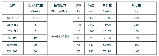 三、2SK系列水環式真空泵參數表: