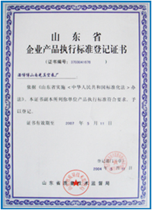 企業(yè)產(chǎn)品執(zhí)行標(biāo)準(zhǔn)登記證書(shū)